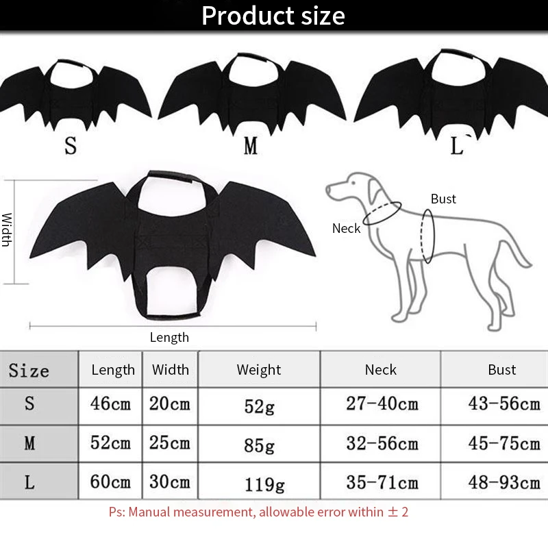 Enhance your pet’s festive look with these artificial bat wings designed for cats and dogs. Perfect for Halloween and Christmas cosplay, this lightweight costume accessory adds a playful and spooky touch to your pet’s outfit. Easy to wear and suitable for various pet sizes, it transforms your furry friend into a whimsical character for seasonal celebrations and photo opportunities.